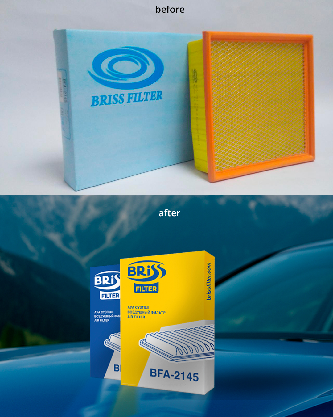 На основе полученных данных был сформирован характер бренда и визуальное наполнение ТМ "Brissfilter". Акцент был сделан на цветовую гамму упаковки, так же ТМ получила новое позиционирование, которое отражает суть фермерства. За счет таких решение потребителю легче идентифицировать товар среди конкурентов.